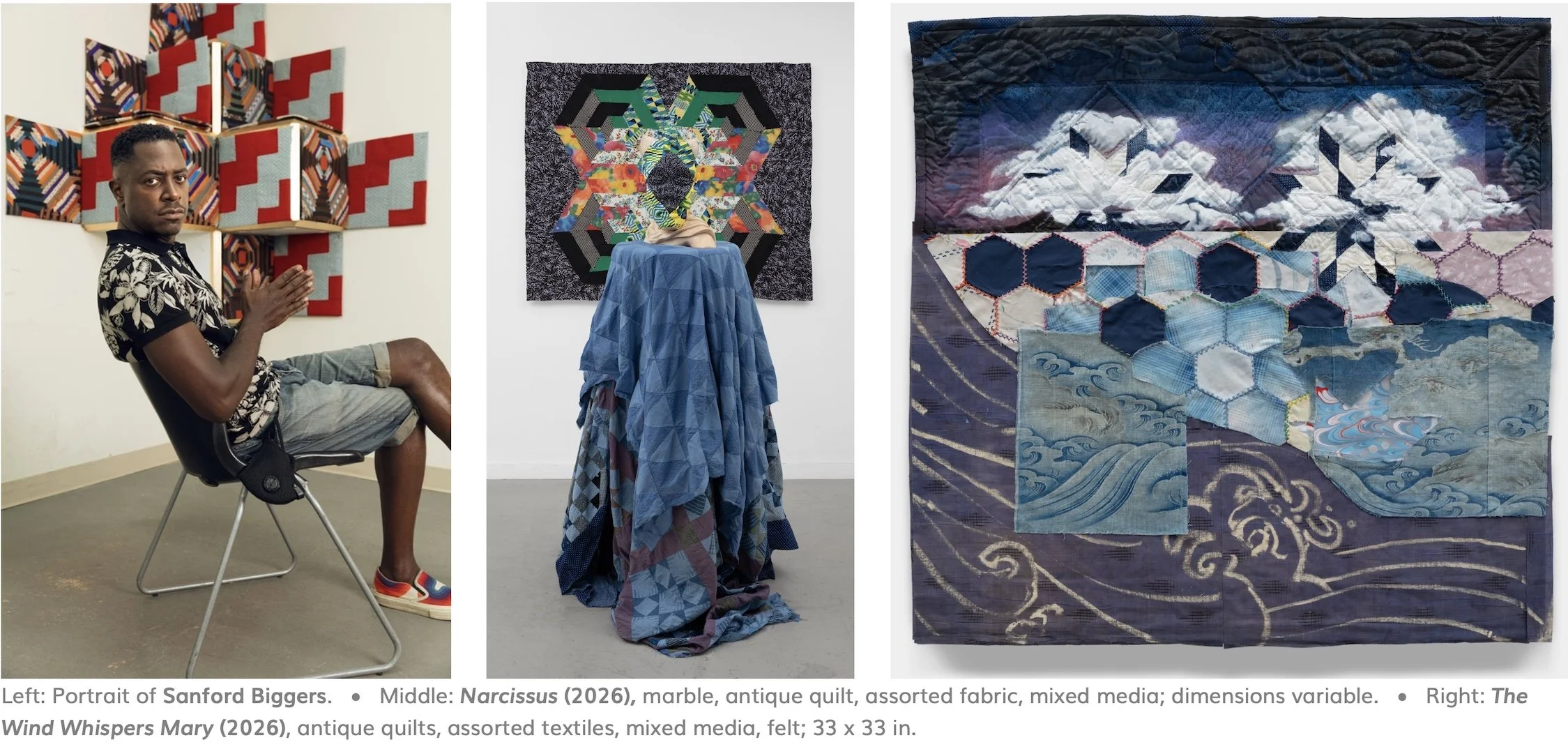 Marianne Boesky is pleased to present The Gift of Tongues, an exhibition of all-new work by Sanford Biggers (b. 1970 in Los Angeles, CA) in the form of an immersive labyrinth of curtains and false walls punctuated by individual artworks.