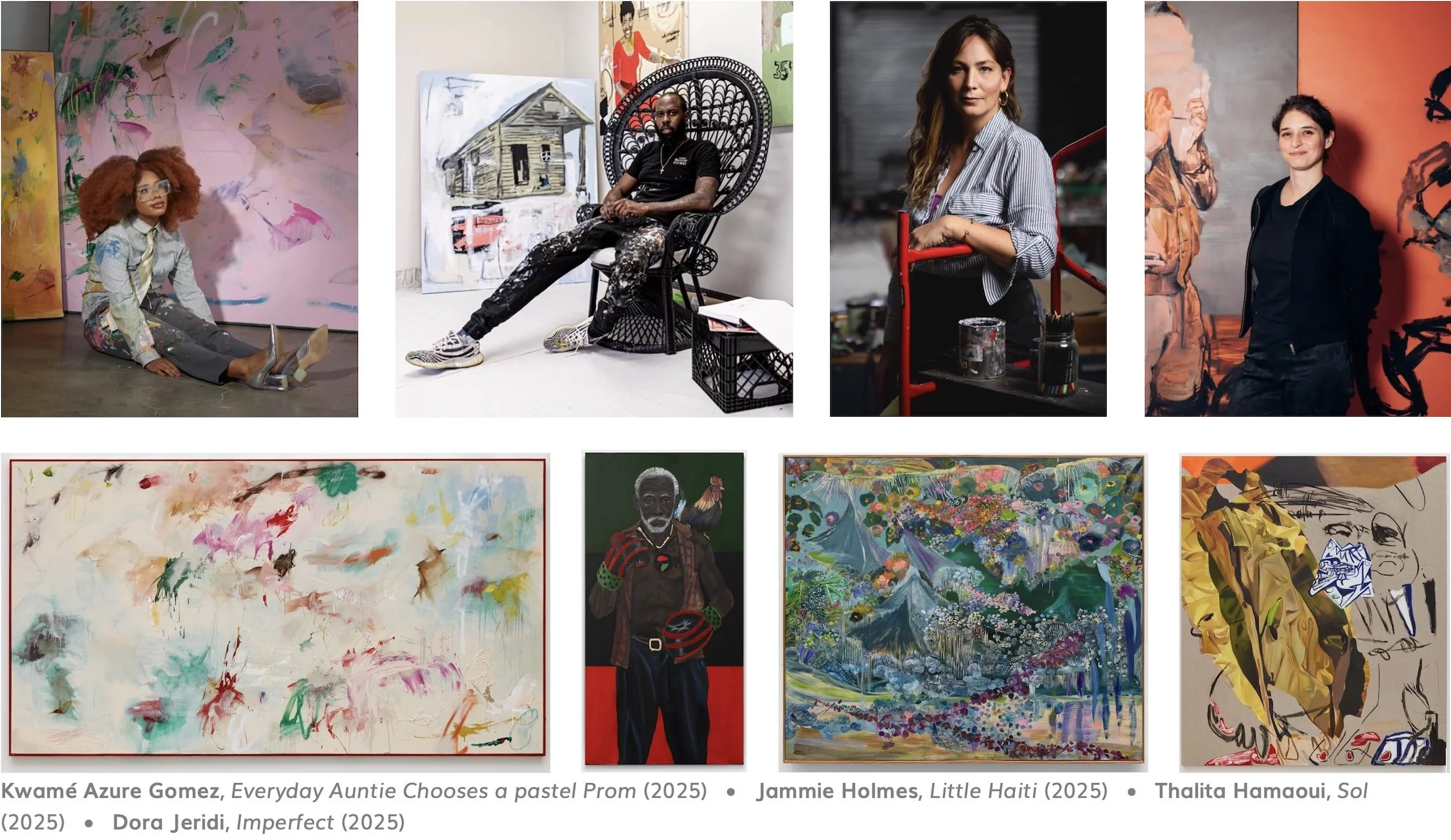 The full list of exhibiting artists includes Ghada Amer, Jennifer Bartlett, Sanford Biggers, Pier Paolo Calzolari, Gabriel Chaile, Svenja Deininger, Kwamé Azure Gomez, Haas Brothers, Thalita Hamaoui, Jay Heikes, Jammie Holmes, Dora Jeridi, Aubrey Levinthal, Suzanne McClelland, Sarah Meyohas, and Serge Alain Nitegeka.