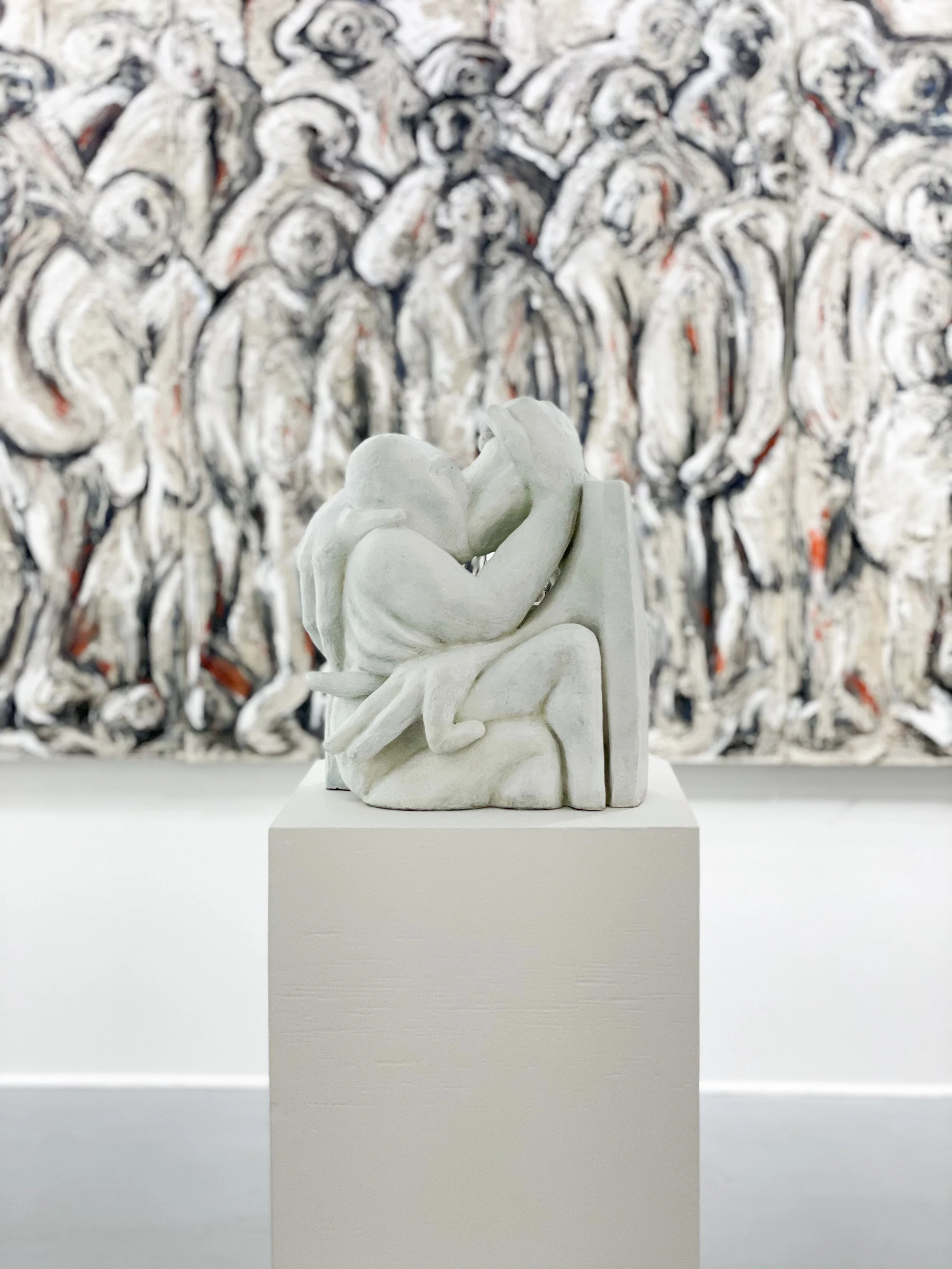 Another body of work—the titular painting included, along with a ten-foot triptych—remove the figurative subjects of newspaper photos from their provided contexts (Overcome by Joy, for instance, offers open-ended emotive readings into what was originally a photo of tennis player Andy Murray collapsed in ecstasy after a major victory).